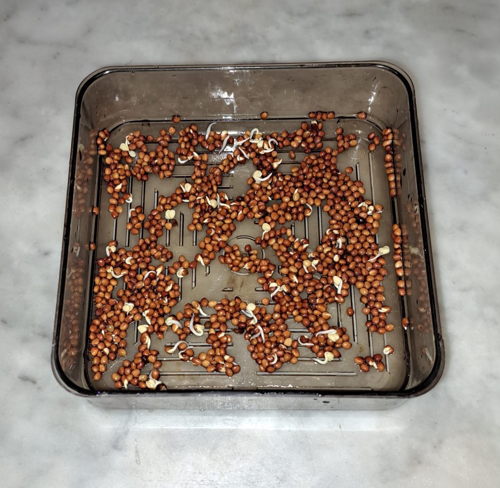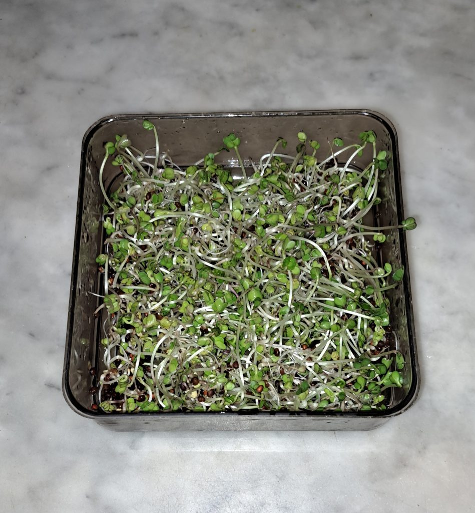 Voor iedereen die zaadjes van de zwarte radijs heeft gekregen van de actie in het tijdschrift ‘Uitzicht’: foto’s onderaan het artikel. Hieronder zien jullie twee foto’s. Na drie dagen (foto 1) gaat de zwarte radijs kiemen. Na vijf dagen komen er haarwortels aan de hoofdwortel, dit lijkt op schimmel, maar dat is het niet! Je kan dit gewoon iedere dag afspoelen en de kiemen lekker opeten als ze 3 á 5 centimeter lang zijn. Eet smakelijk!